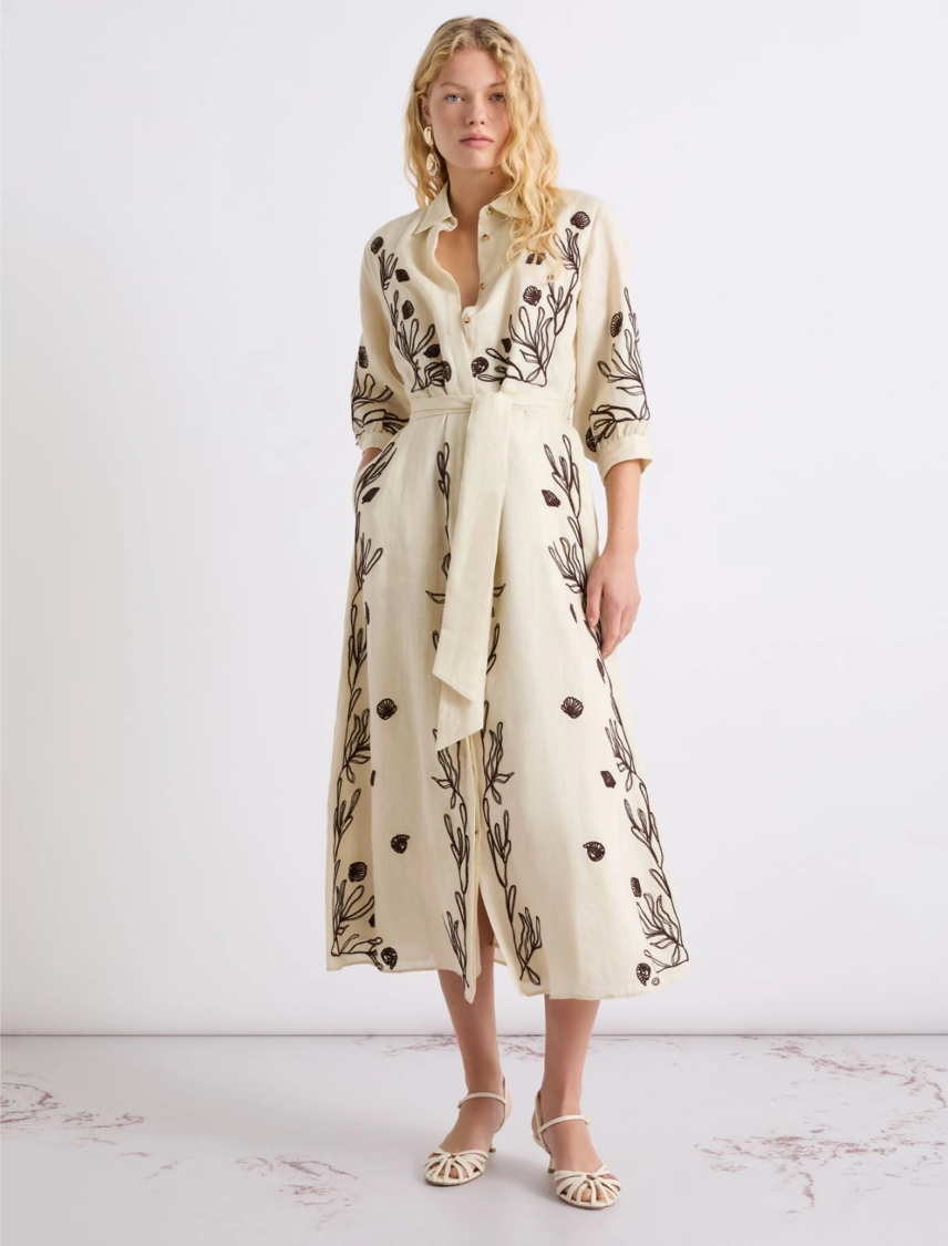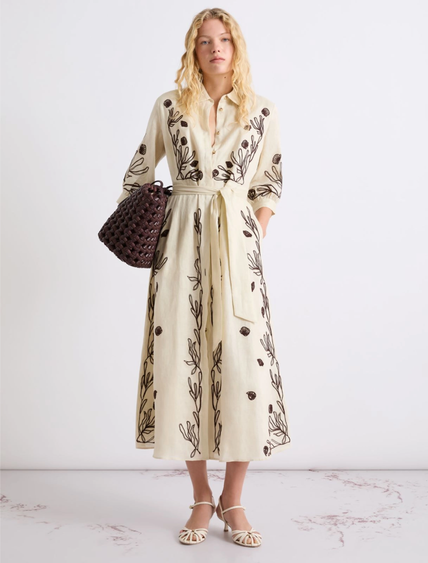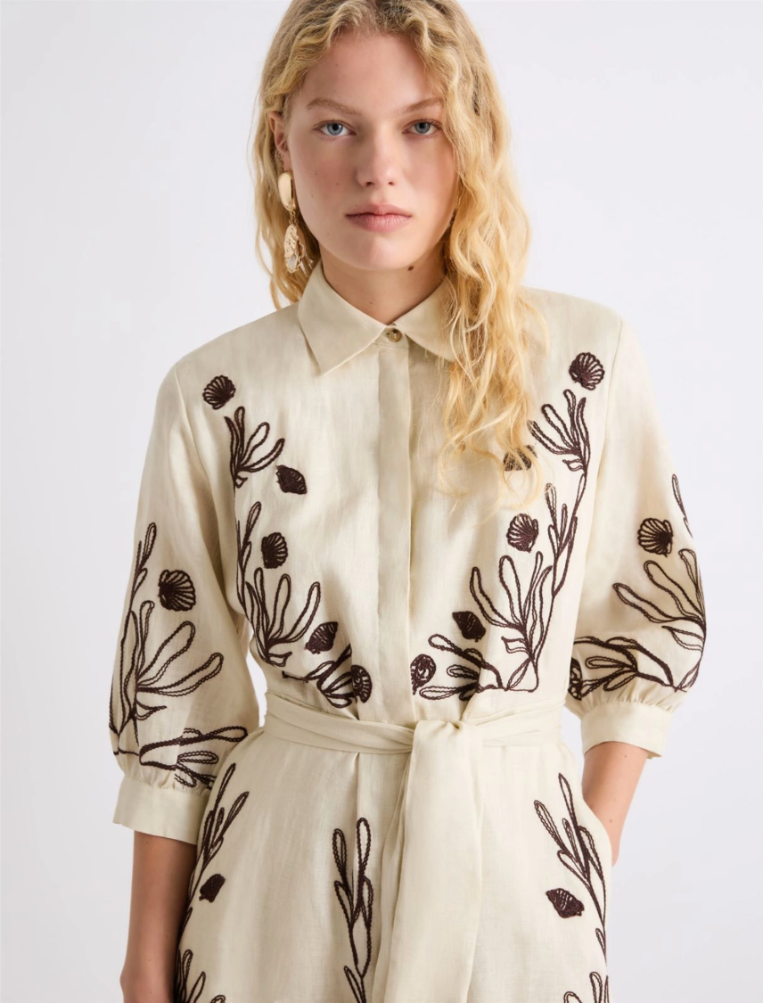 - Abito in lino con ricamo e fodera in cotone