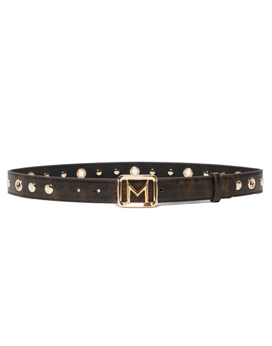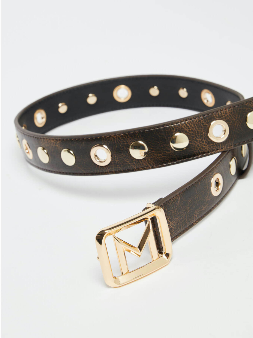 Cintura con borchie e passavela. È parte della collezione Marella MONOCHROME: silhouettes monocolore, in materiali selezionati, e layering impeccabili per outfit luxury. Fibbia con logo. Altezza 3 cm.