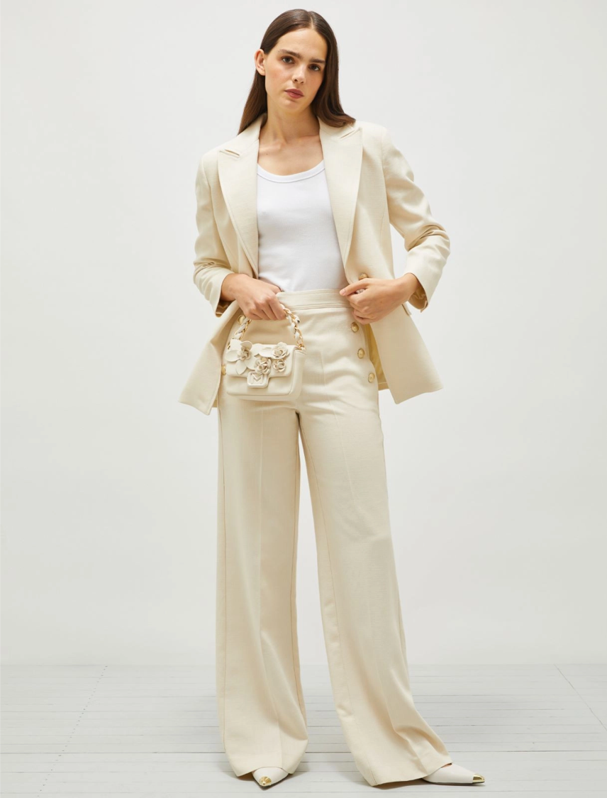 Pantalone palazzo in chevron di lino e viscosa Marella MLLODINO