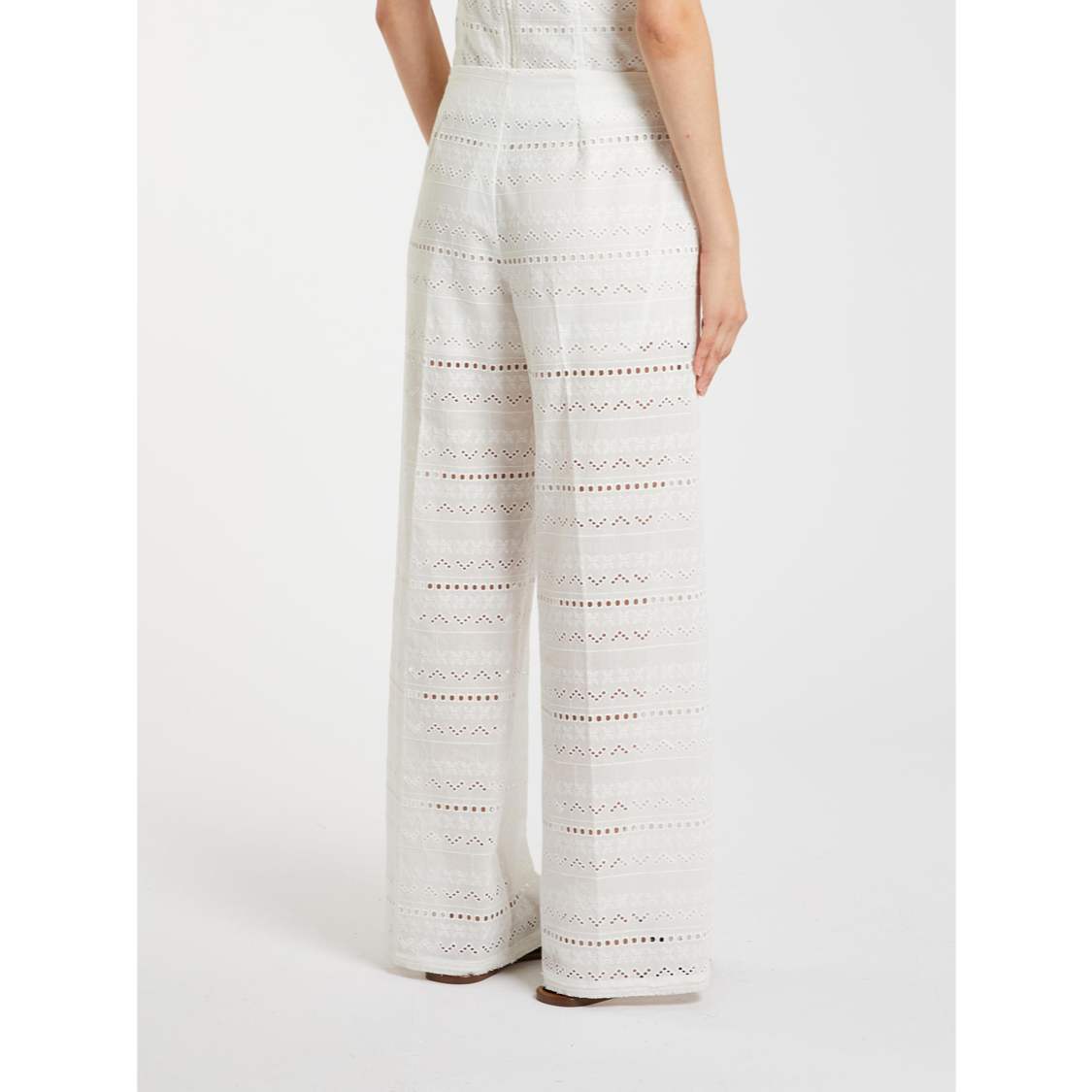 - Pantalone in voile di misto cotone con ricami all over
