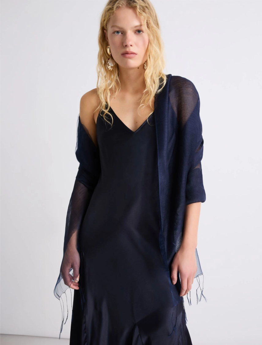 Ampia e avvolgente, la stola in misto seta è l’accessorio versatile che puoi indossare con il blazer o con la t-shirt. Il risultato sarà sempre impeccabile.